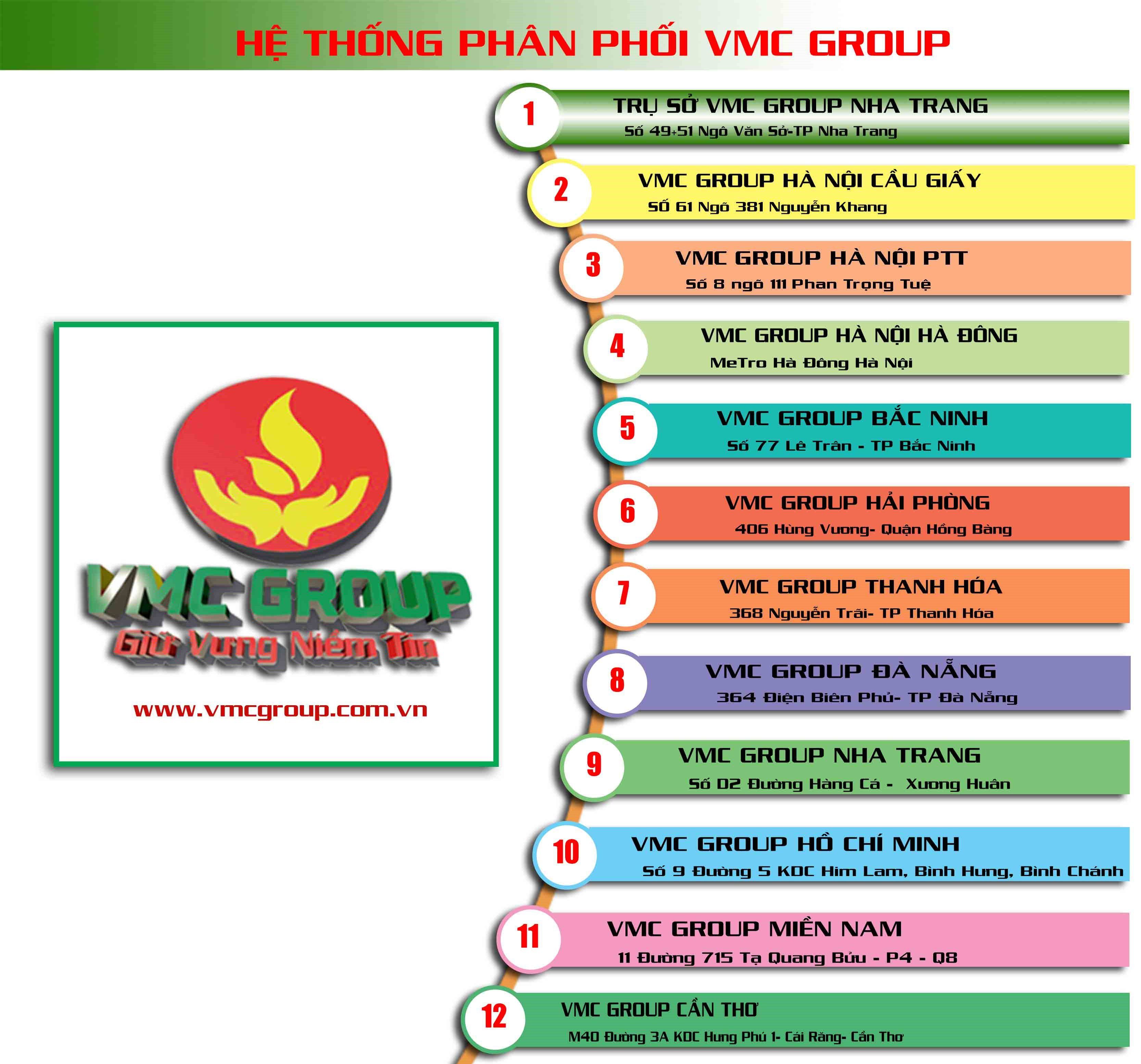 Quý khách hàng có nhu cầu mua sản phẩm hoặc cần hỗ trợ vui lòng liên hệ Chi nhánh công ty gần nhất của VMCGROUP dưới đây để chúng tôi được phục vụ tốt nhất. Trân trọng cảm ơn Quý khách !